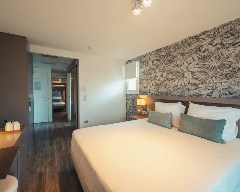 Nos chambres familiales ont une superficie de 32m2 et sont situées à l'arrière de l'hôtel.
